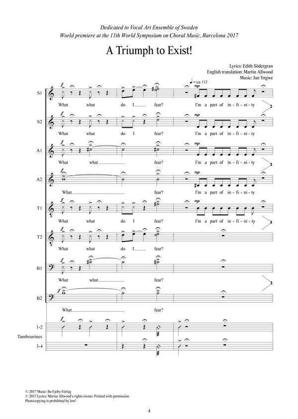 The expressive music of Jan Yngwe very well suites the lyrics. English translation by Martin Allwood.