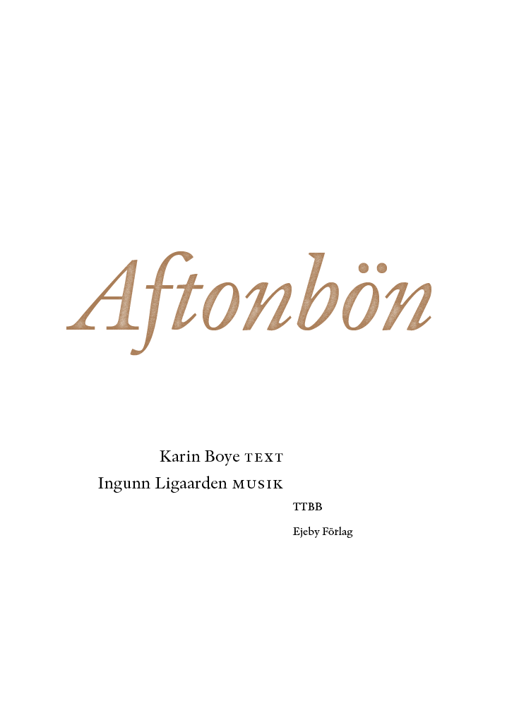 ”Ingen stund är såsom denna, kvällens sista, tysta timma … ” En av Karin Boyes mest kända dikter, från debutsamlingen Moln, 1922, har fått musik av Ingunn Ligaarden. – Finns även i sättning för SSAA.