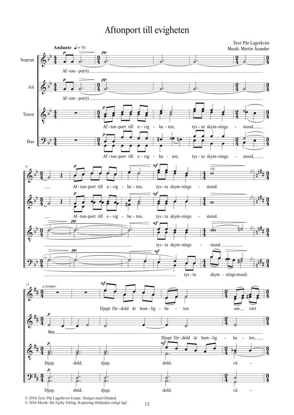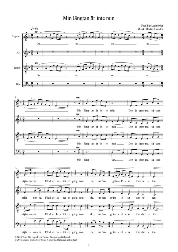 Three poems by Swedish Nobel laureate Pär Lagerkvist, with music dedicated to conductor Gary Graden.
