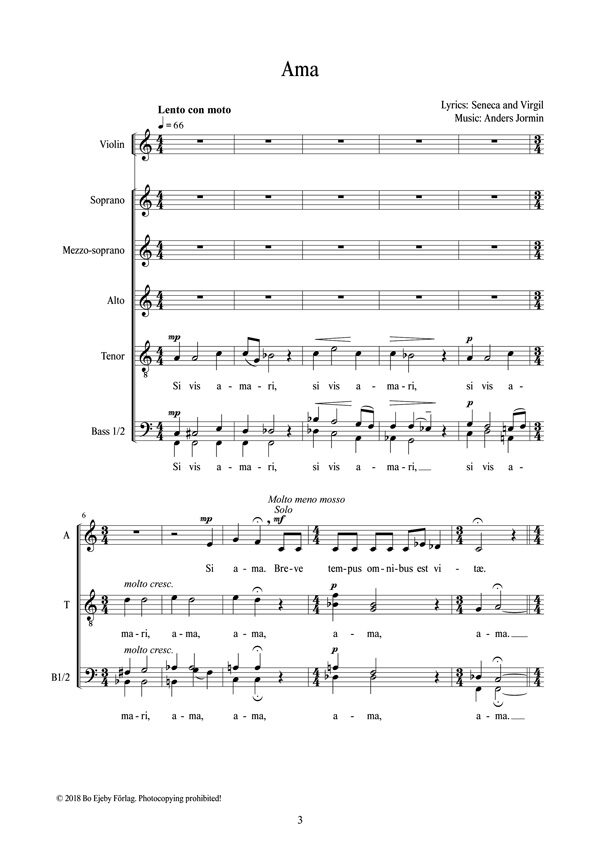 The solo part, notated here for the violin, can also be played on a clarinet, an alto flute, a cello or an English horn. The piece can also be performed without an instrumental solo.” – Anders Jormin