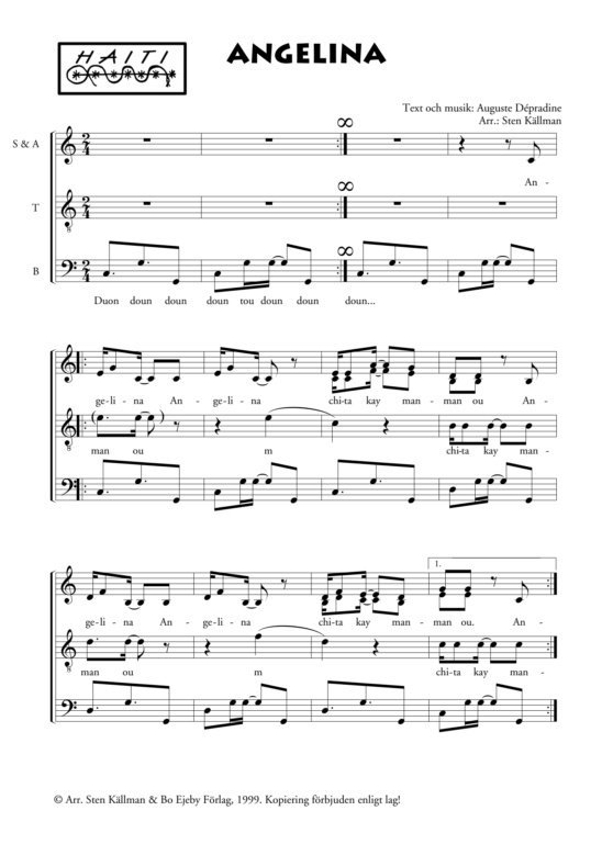 Traditional Haitian rhythms to political ”anti-American” lyrics from the time when the US occupied Haiti. A song in an arrangement for vocal ensemble Amanda. Lyrics in Haitian Creole.