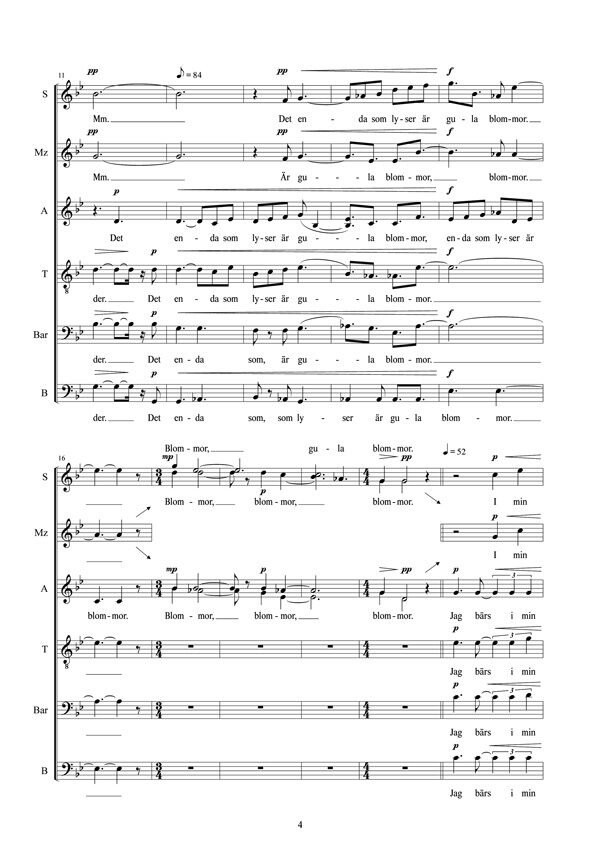 Kompositionen för 6-stämmig blandad kör är tillägnad Lunds Vokalensemble.
