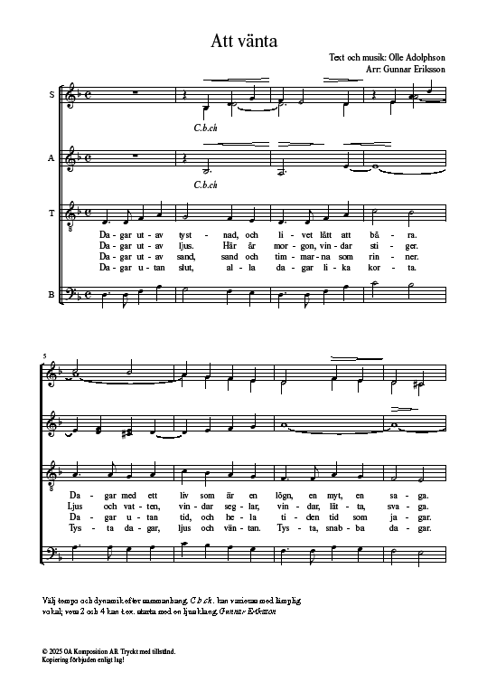 En sång om vårt liv, om våra tomma dagar, om våra rika dagar, om allt det goda och allt det trista. Om tystnad, ljus och väntan, om tid som rinner och natt som kommer.