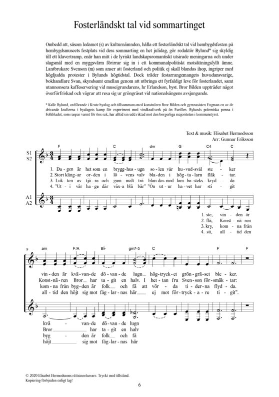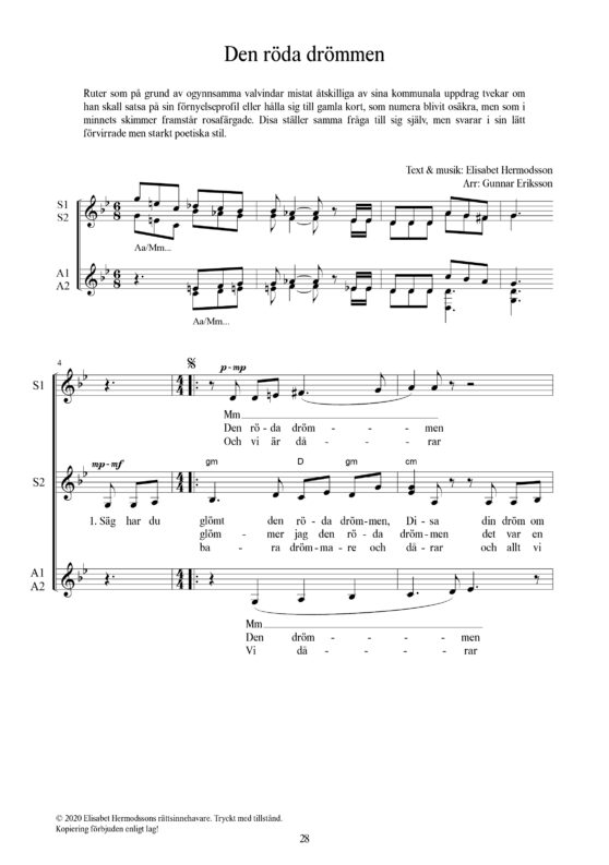 Fler arrangemang för damkör av Elisabet Hermodssons visor: