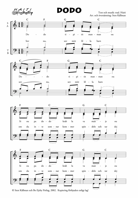 Traditionell haitisk musik i arrangemang av Sten Källman för kör och slagverk. En sång ur Sångensemblen Amandas repertoar.