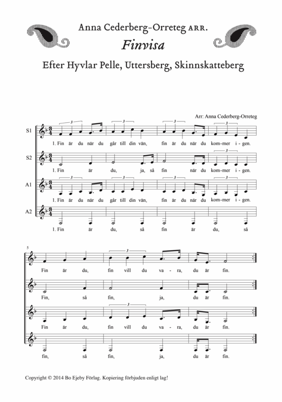 Polska efter Hyvlar Pelle, Uttersberg, Skinnskatteberg, arrangerad för 4-stämmig damkör.