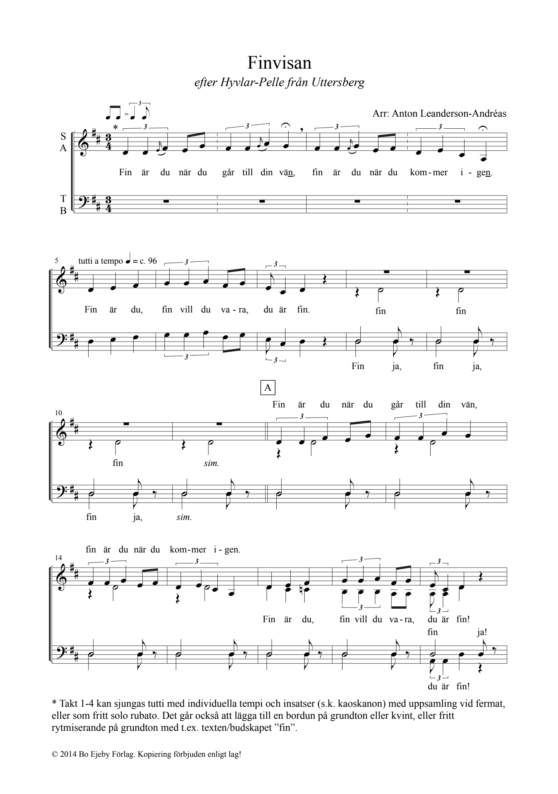 Polska efter Hyvlar-Pelle från Uttersberg. Nedan kan ni lyssna på kören A Capriccios inspelning av låten, från CD:n Bliv min ro (2015). Kören leds av Anton Leanderson-Andréas.