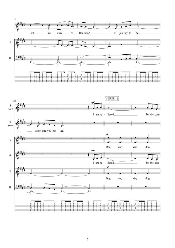 8-part choir SSAATTBB and tenor and soprano soloists (from the choir) accompanied by a guitar in modern pop style.