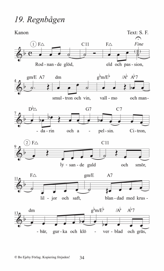 En samling med 24 sånger av Stefan Forssén – om livet och döden, kärleken och evigheten, havet och regnbågen. En del gamla bekanta, men också flera nya sånger. Att sjungas i kanon eller unisont, för sig själv eller tillsammans med andra.