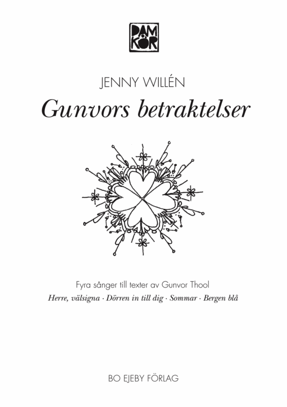 Fyra stillsamma, meditativa sånger för damkör av begåvade sångerskan och kompositören Jenny Willén. Sångerna bygger på texter av Gunvor Thool och kan med fördel användas i andaktsstund varvat med diktläsning.
