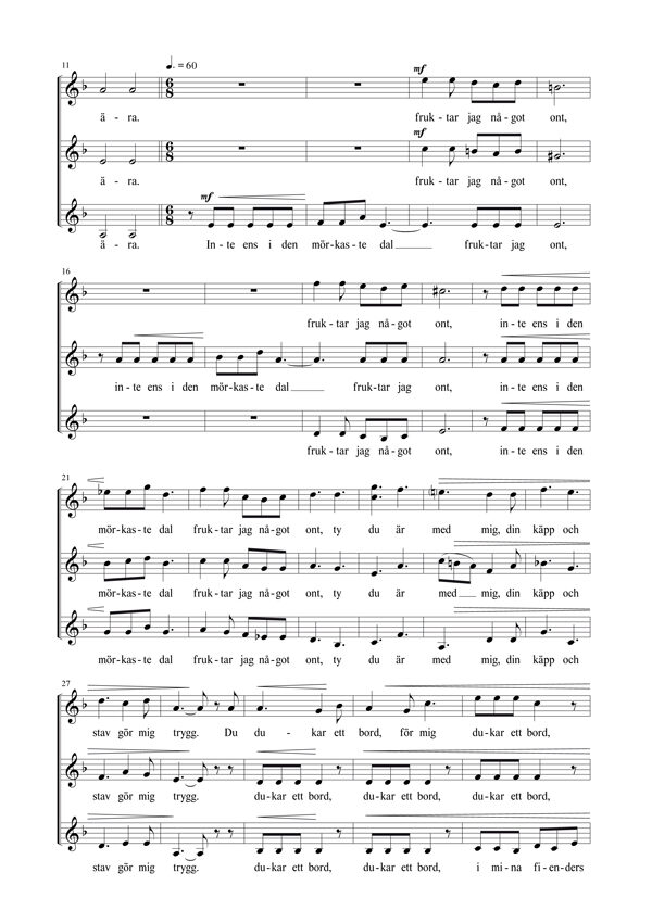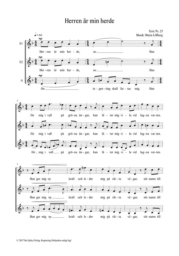Motett för trestämmig damkör av kyrkomusikern och tonsättaren Maria Löfberg, verksam i Falkenberg. Text från Psaltaren 23.
