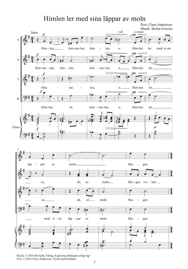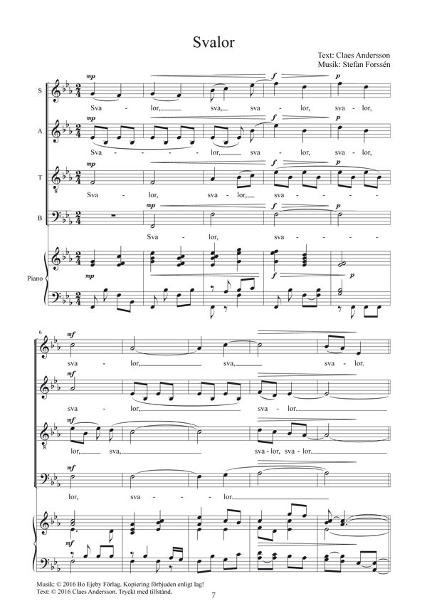Two songs, ”The sky smiles with its lips, made of clouds” and ”Swallows”. Stefan Forssén is a Swedish jazz pianist and composer. Claes Andersson, he too a jazz pianist, but also psychiatrist, politician and poet.