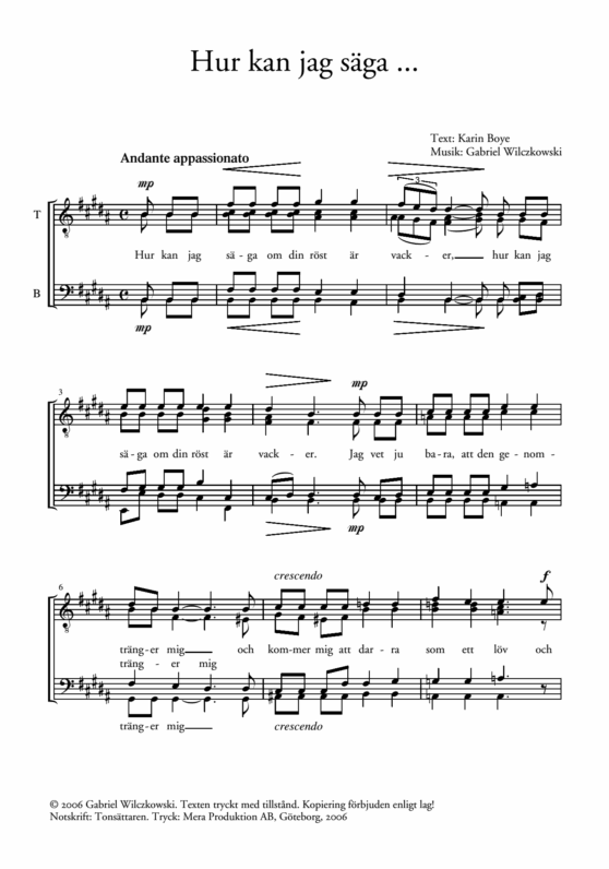 ”How can I say…” A lovely piece on an equally lovely poem by Swedish poet Karin Boye. Also available for male choir.