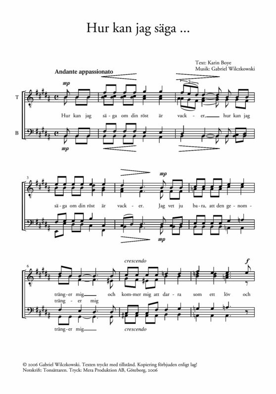 ”How can I say…” A beautiful poem in an equally beautiful setting by talented composer Gabriel Wilczkowski. Also available for mixed choir.