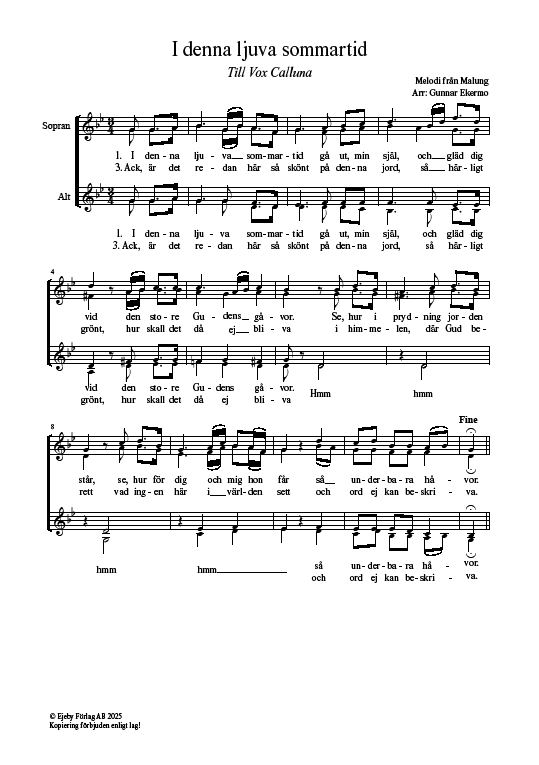 En folklig variant av en välkänd sommarpsalm, i tradition från Malung. Ett enkelt och stämningsfullt arrangemang av Gunnar Ekermo, tonsättare, sångare, musiker och tidigare musikkritiker i Linköping.