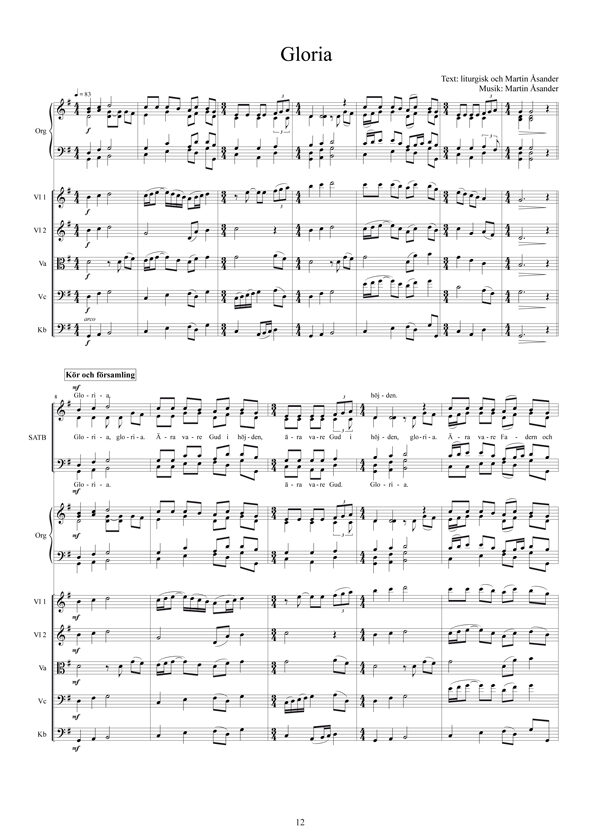 Mässa för blandad kör, församling, flöjt, stråkar, piano och orgel.