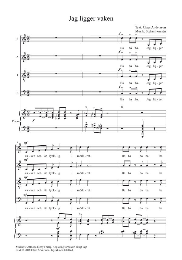 ”I lay awake”. Words by Finnish-Swedish poet Andersson, music by composer and jazz pianist Forssén.