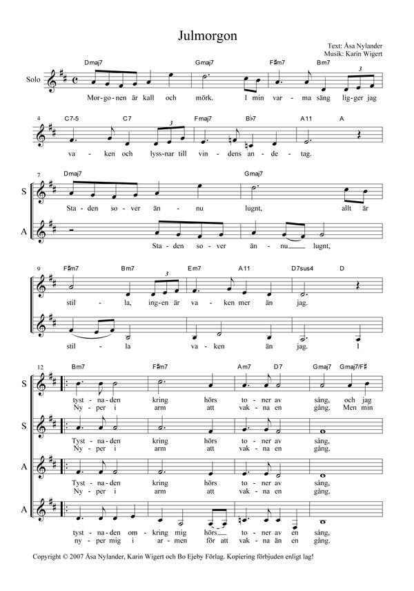 ”Christmas morning,” a song about the birth of Christ. Lovely Christmas tune with a touch of jazz in the harmonies. For female voices with accompaniment.