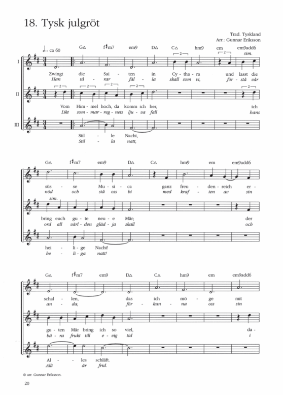 Gunnar Eriksson skriver: ”Pröva att se körövningen som ett laboratorium och kören som en unik miljö för oväntade upplevelser.” I det här häftet finns många prov på Gunnar Erikssons närmast geniala förmåga att arrangera visor och sånger, bland annat i klassiska quodlibet-satser, konstfulla kanonsatser och andra lyckade kombinationer.