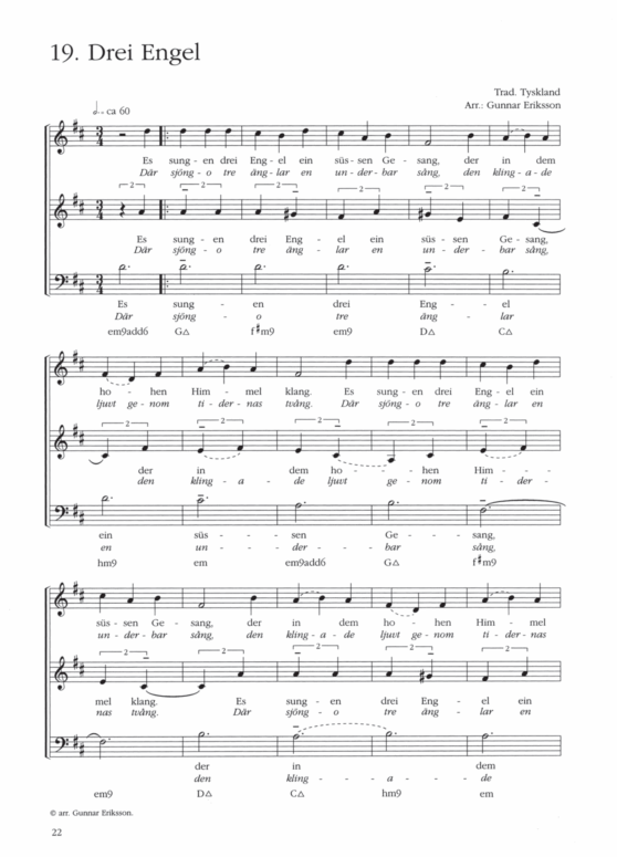 Körledaren (bl. a. Göteborgs kammarkör och Rilkeensemblen) och arrangören Gunnar Eriksson har samlat musik av skilda slag och ger förslag till hur den kan brukas i körer, bl.a. för att komma loss ur noternas tvångströja. Materialet bygger på musik från medeltid och renässans, folkmusik från olika kulturer, psalmer och nutida s k minimalistisk musik. Bland mycket annat publiceras här för första gången originalkompositioner av Bo Holten, Terry Riley och Harald Svensson, liksom bearbetade versioner av stycken av György Ligeti och Folke Rabe.