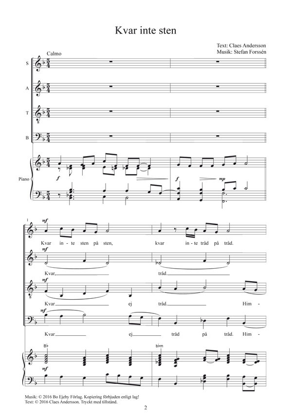 ”No stone left / And look!”. Two songs with words by Finnish-Swedish poet Andersson, music by composer and jazz pianist Forssén.