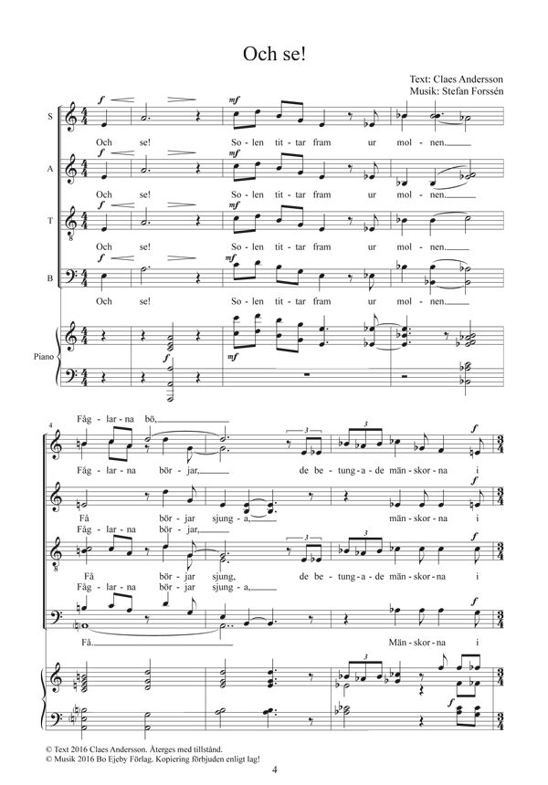 Jazzpianisten och kompositören Stefan Forssén har alltmer kommit att skriva för kör. I den finlandssvenska poeten Claes Anderssons lyrik har han funnit många dikter att tonsätta.