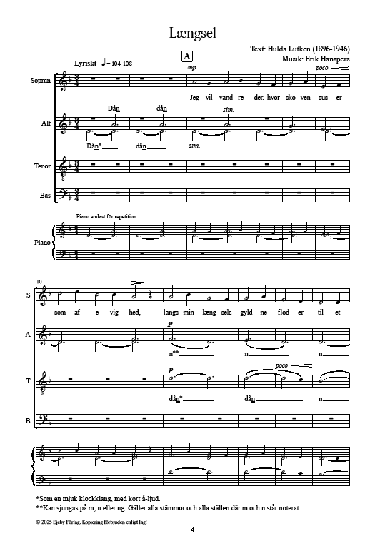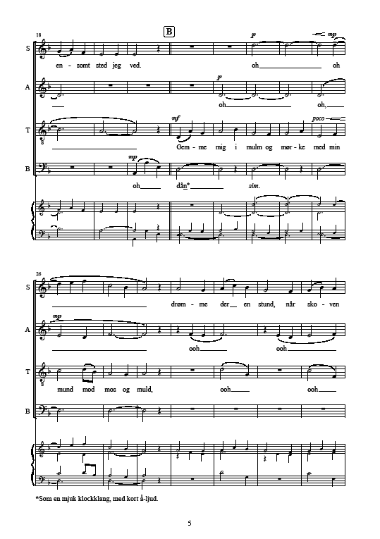 Part of the suite ”Songs from the Other Side”. The poems that were selected for the compositions in the suite were characterized by a hopeful longing, but also by a certain playfulness, as two of the poems were about birds. The song ”Jeg ville være som falken”, with lyrics by Hans Henriksen, is also published from the suite.