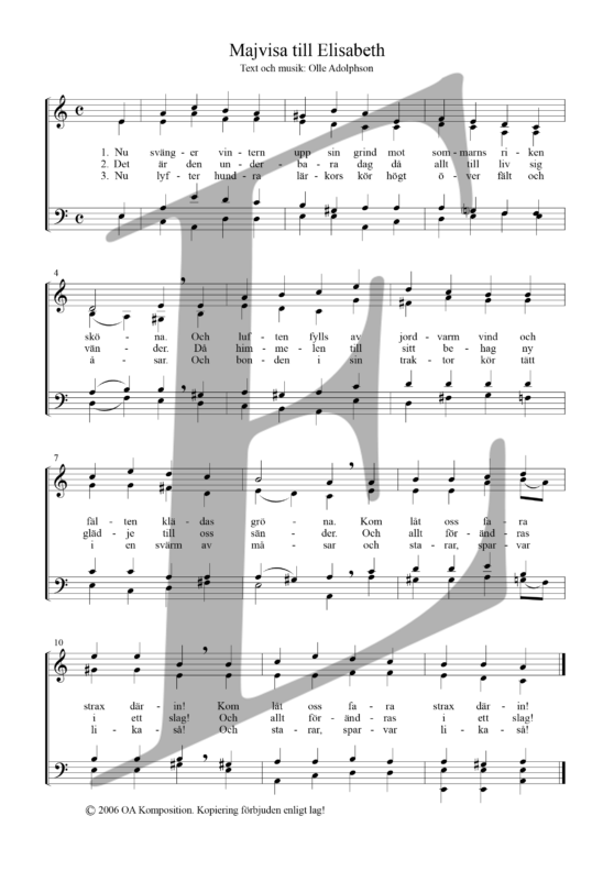 ”Song in May for Elisabeth”. Summer ballad by popular Swedish composer Olle Adolphson.