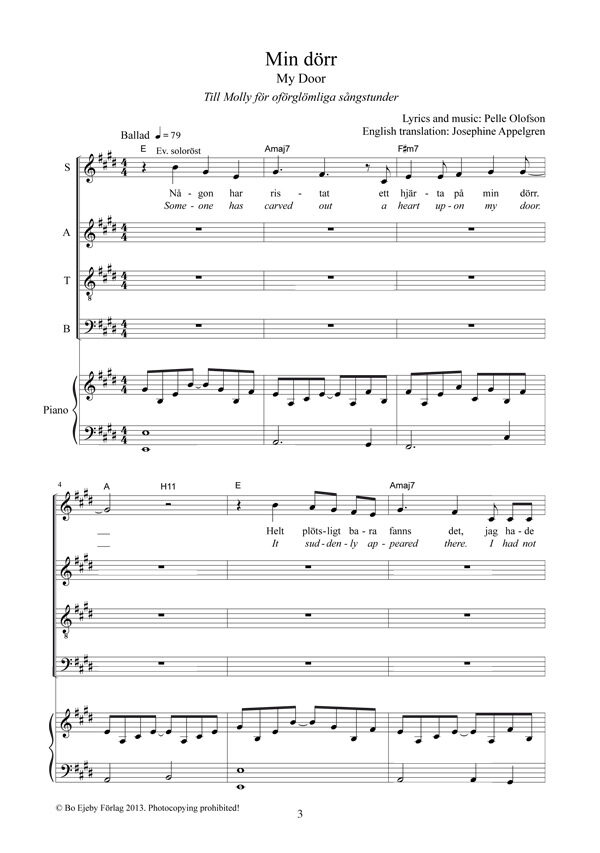 En kärlekssång, som säkert tilltalar både yngre och äldre sångare. Text på svenska och engelska (i översättning av Josephine Appelgren).