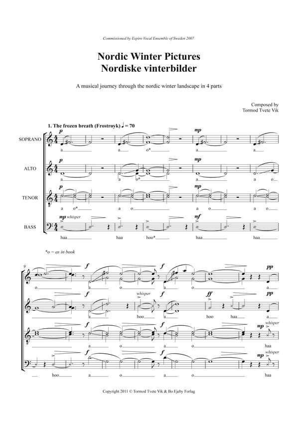 A musical journey through the Nordic winter landscape. Music in four movements, illustrating the sounds of Nordic winter:
