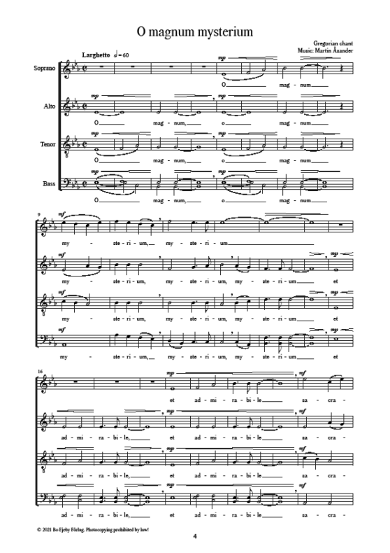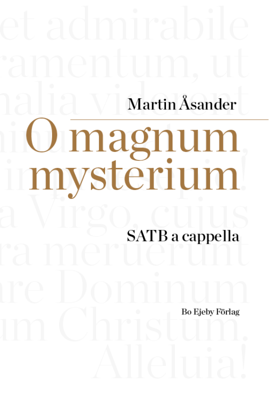 ”O magnum mysterium is a responsorial chant from the Matins of Christmas. I was searching for a text that would easily fit and be suitable for Christmastime and was lucky to find an old score that I had first started working on in 2013, originally in a men’s choir setting. I initially asked myself if the world needs yet another composition featuring this text about the Virgin Mary and the birth of Jesus, but after playing it through a couple of times, I was struck by the simplicity and purity in the music. I immediately started to edit the original score and also made a version for mixed choir, which I decided to dedicate to VoNo Vocals and their conductor Lone Larsen. O magnum mysterium is to be premiered in Tolosa, Spain, in the beginning of November 2021.” – Martin Åsander