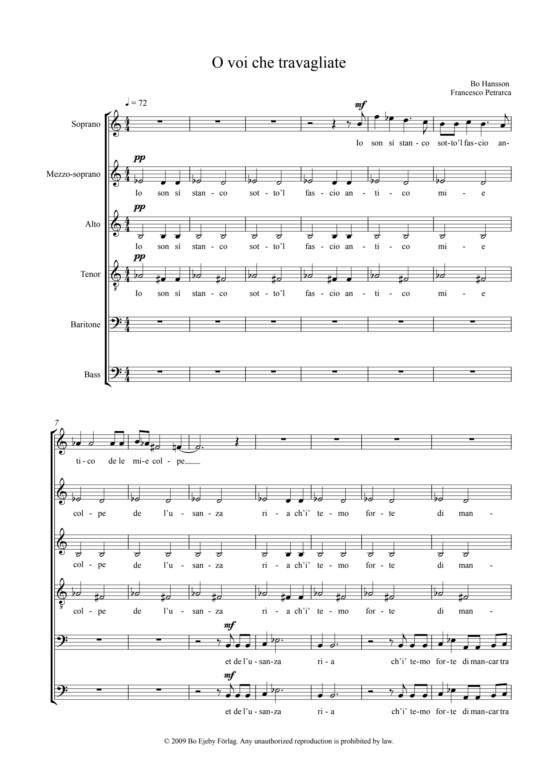 Petrarcas sonett nr 81 i en stilig tonsättning för 6-stämmig blandad kör a cappella.