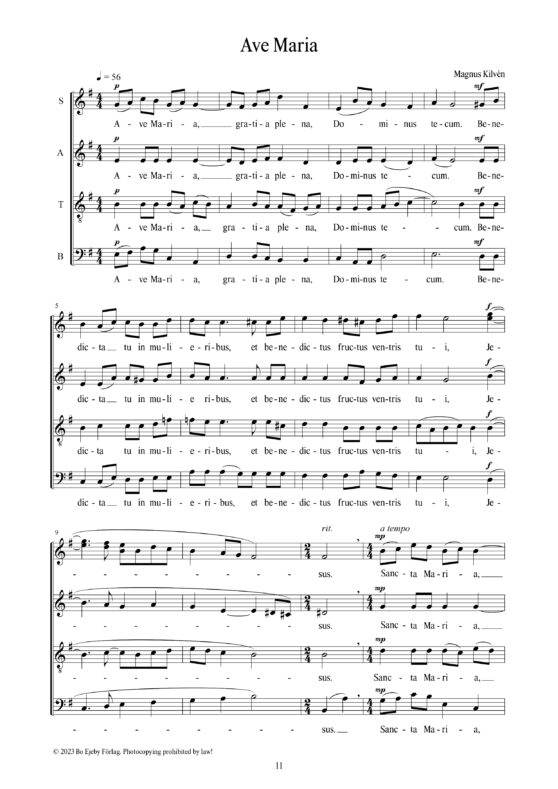 ”In my choral works, I try to combine the mode of expression from days gone by with the music I wish to create today, often landing in the tonality of music stemming from the turn of the last century by composers such as August Söderman, Emil Sjögren and Gabriel Fauré – to name but a few who have inspired me. My intention is also to provide choirs access to a somewhat different expression within the framework of a fairly traditional composition.