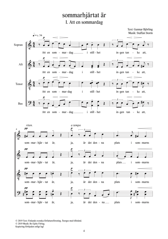 ”Heart of summer is”. The Finnish-Swedish poet Gunnar Björling is one of the foremost poets of Swedish-language modernism. His minimalist, laconic poems are in all their simplicity impressionistically full of associations. Composer Staffan Storm has selected five poems from Björling’s collections, all with a summer theme close to nature, and given them a congenial musical costume.