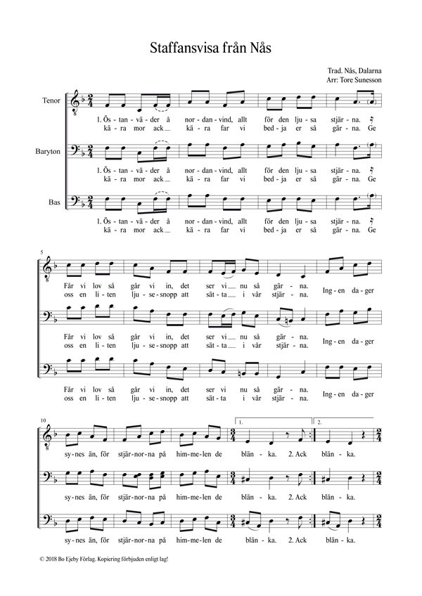 ”Staffan-song from Nås”. A song associated with Saint Stephen, in Sweden traditionally sung on Saint Lucy’s Day (Lucia). This version has its origin from Nås in the Swedish landscape Dalecarlia.