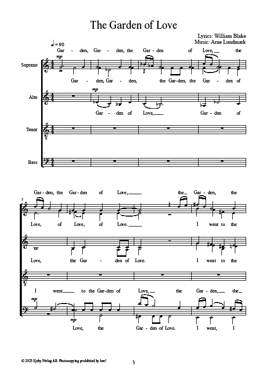 ”The lyrics of William Blake have been set to music by countless composers. I couldn’t help giving it a try myself. His poems have a rhythm and a narrative that give me associations to sounds and tonal lines.