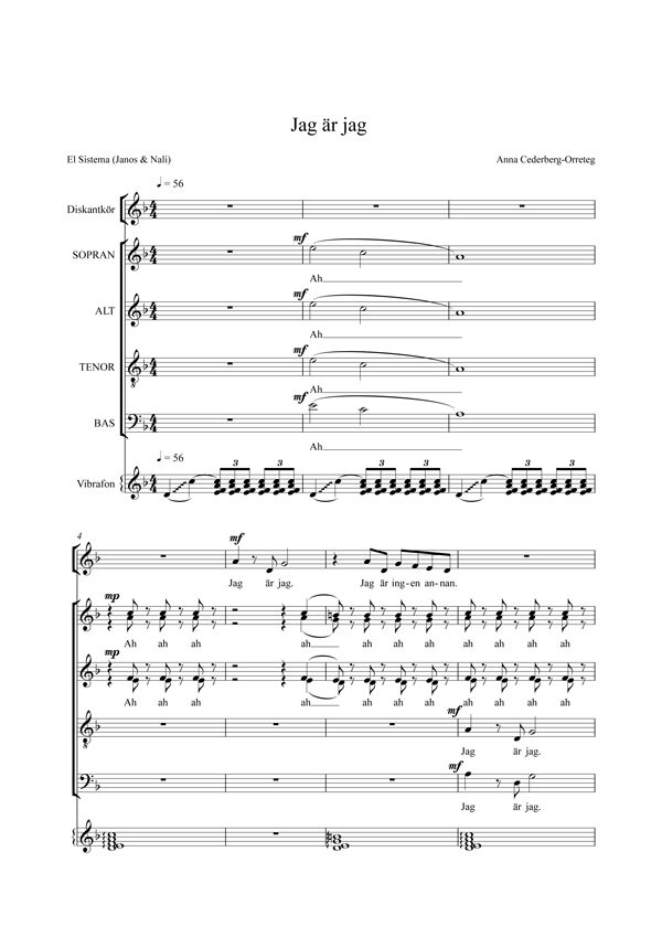 The lyrics of Tillsammans (”Together”) are written by children from the El Sistema Hammarkullen-project. Composed for children’s choir, mixed choir and percussion.
